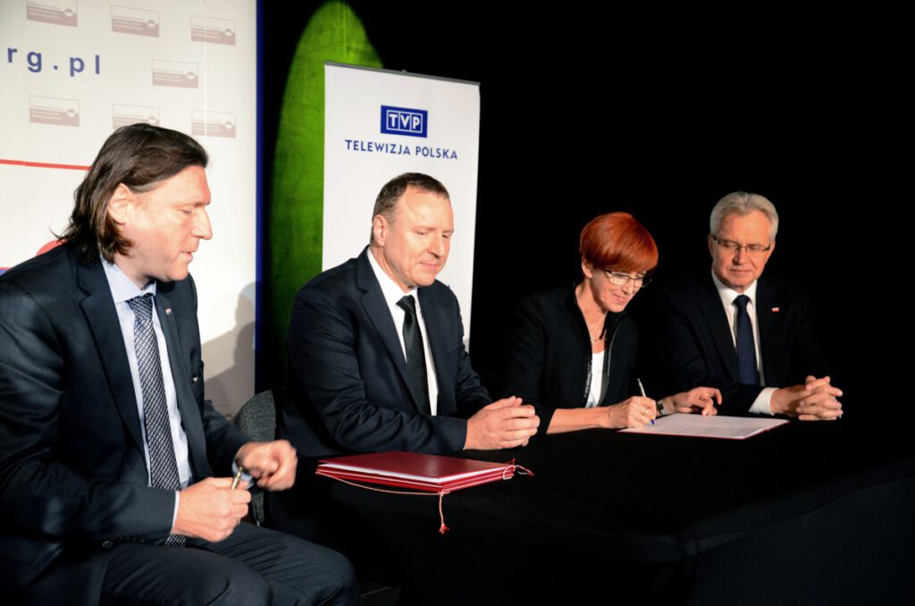 Podczas drugiej części obchodów, które odbyły się w Teatrze Palladium Pani Minister Rafalska, Pan Wiceminister Krzysztof Michałkiewicz, Prezes TVP Jacek Kurski oraz Prezes PFRON Robert Kwiatkowski podpisali Porozumienie w sprawie współpracy na rzecz osób niepełnosprawnych.