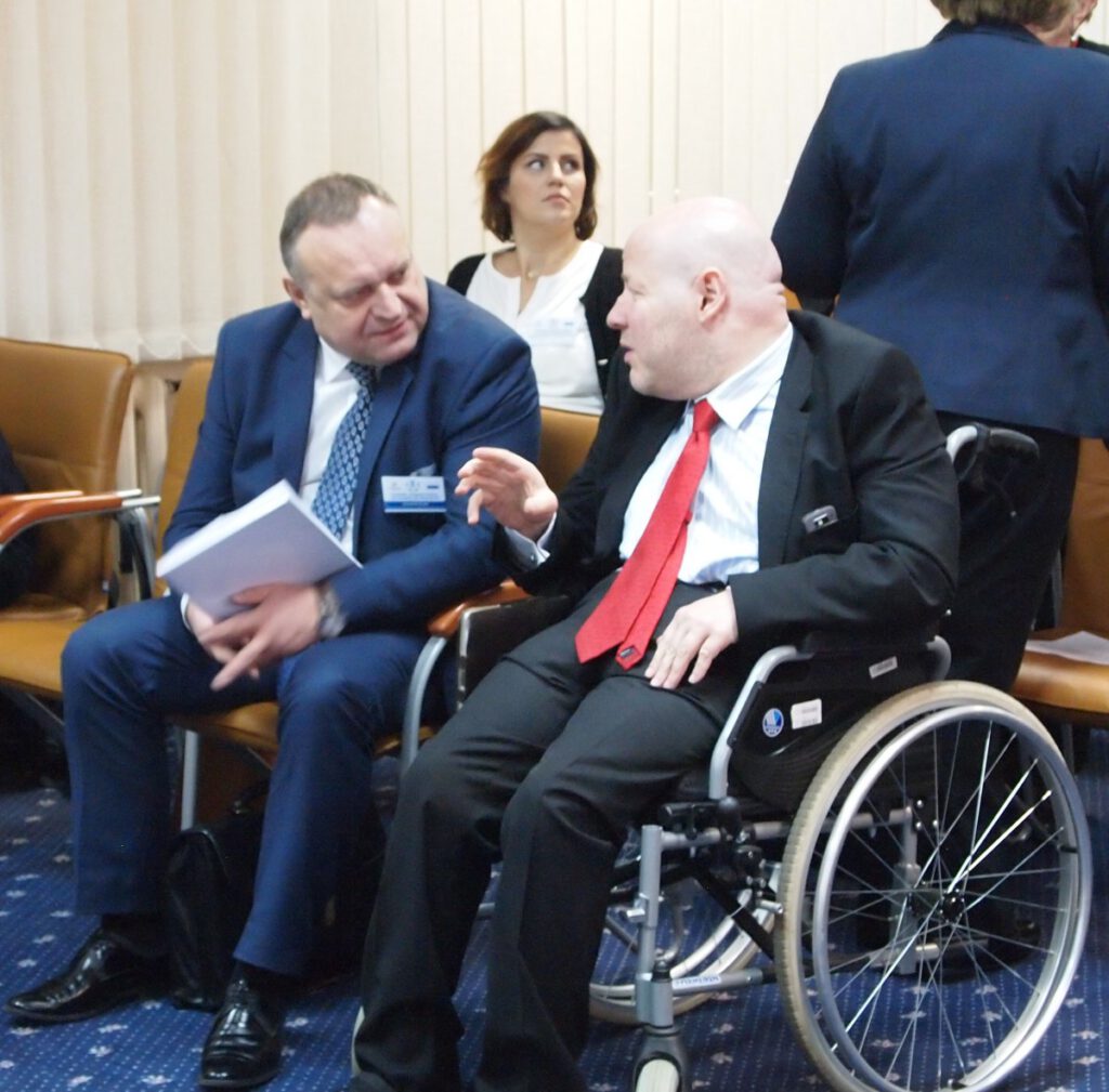Konferencję otworzyli Jarosław Duda Sekretarz Stanu, Pełnomocnik Rządu do Spraw Osób Niepełnosprawnych oraz Teresa Hernik, Prezes Państwowego Funduszu Rehabilitacji Osób Niepełnosprawnych.